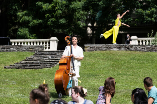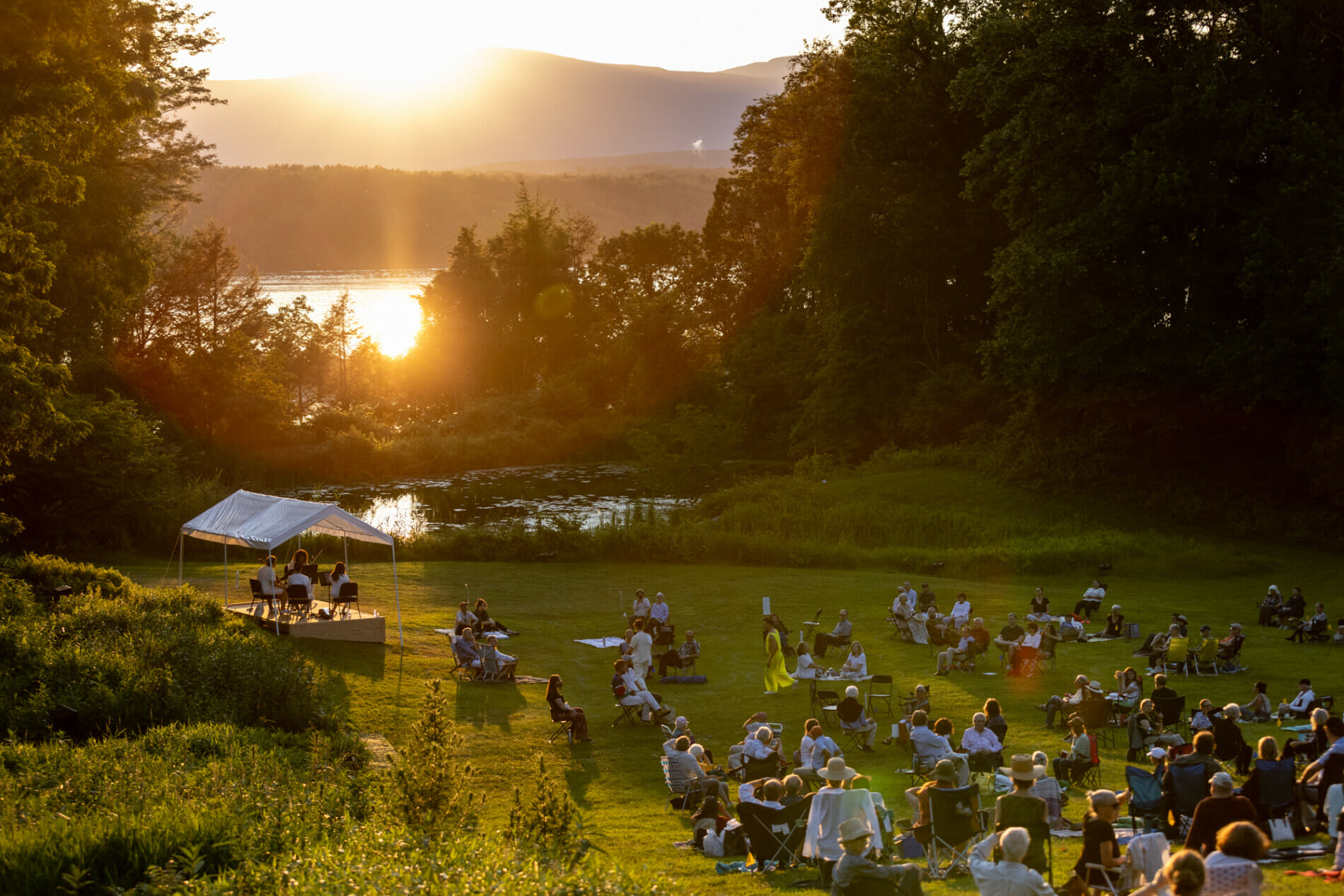 “A new commission from composer Jessie Montgomery and the Fisher Center’s Choreographer-in Residence Pam Tanowitz. Performed with live music, this large-scale dance is set against the spectacular backdrop of the Hudson River and the sun setting behind the Catskill Mountains. Utilizing the full breadth of Montgomery Place’s historic parkland, I was waiting for the echo of a better day beckons us back to gather on this land and pays tribute to what came before. Commissioning funds for I was waiting for the echo of a better day provided by Jay Franke and David Herro.”